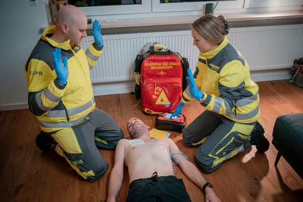 Die Feuerwehrkräfte übernehmen nach Eintreffen sofort die Reanimation und bringen den Automatischen Externen Defibrillator (AED) an.