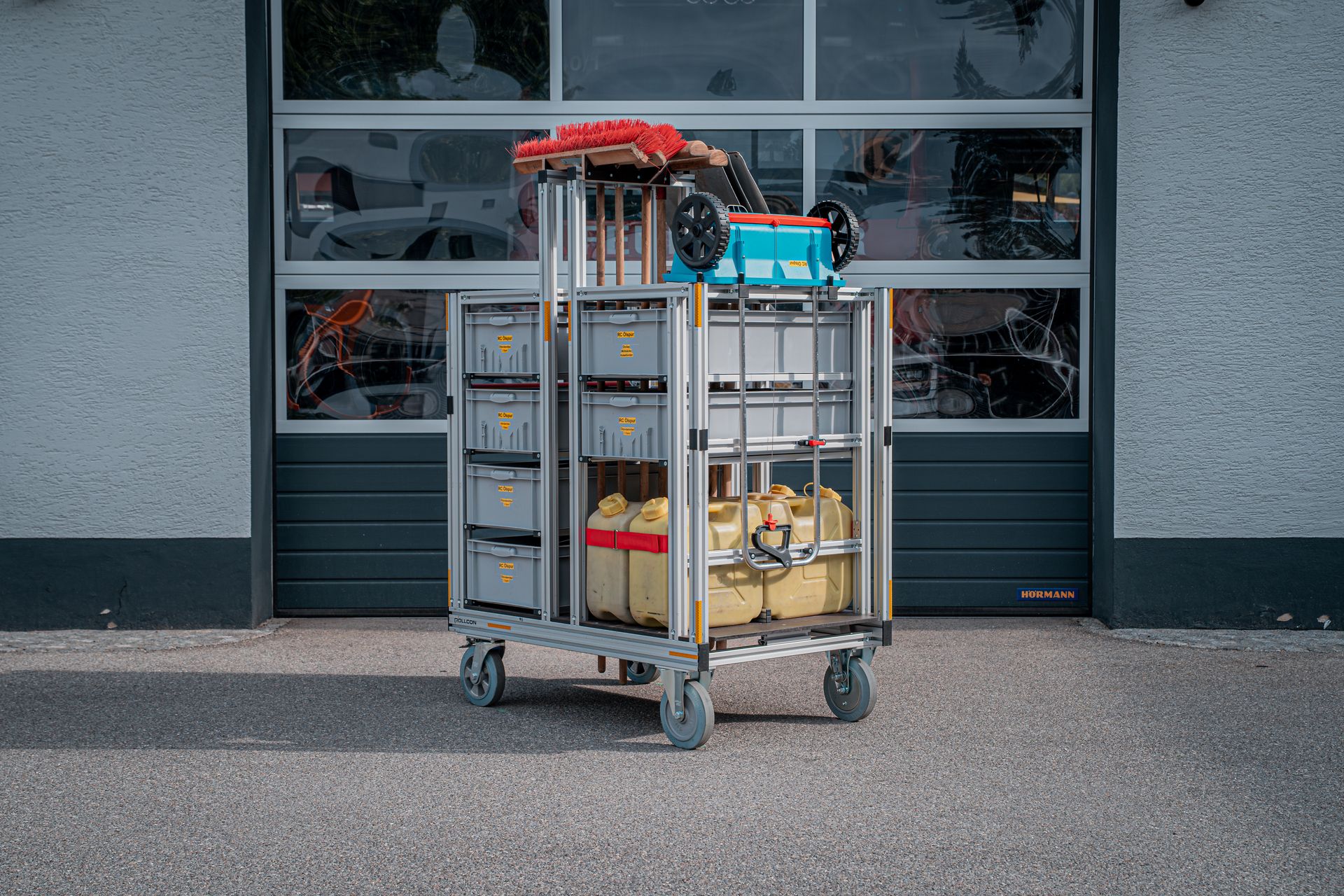 Um bei Öl- und Dieselspuren flexibler reagieren zu können wurde ein Rollcontainer mit sämtlichen benötigten Mittel zu deren Beseitigung geschaffen.