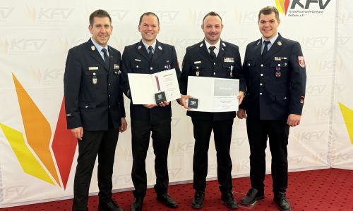 Im feierlichen Rahmen der Kreiskommandanten- und Verbandsversammlung am 15. März 2026 im Convention Center in Bad Gögging wurden zwei verdiente Mitg…
