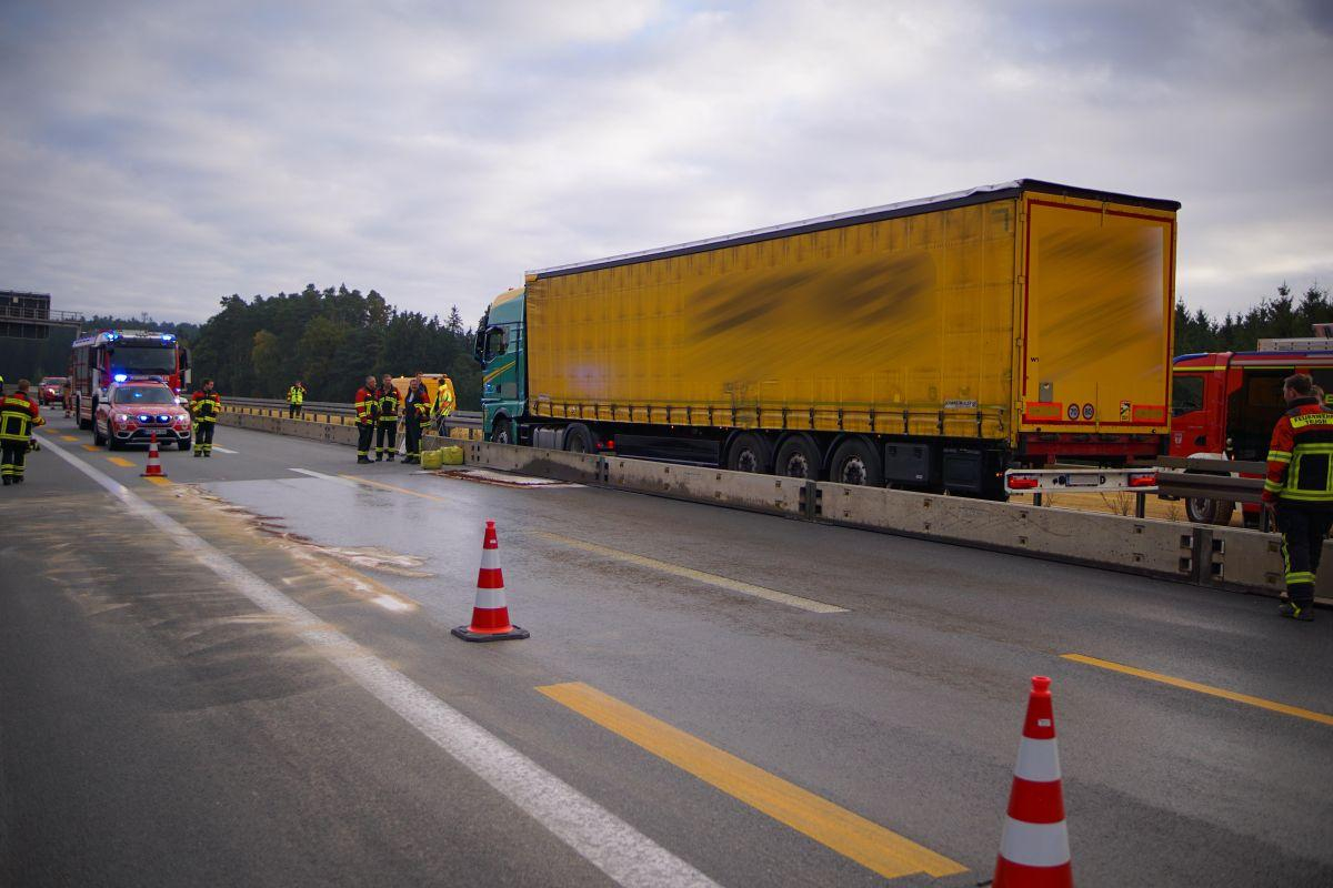Aus einem Lastkraftwagen liefen unkontrolliert rund 300 Liter Dieselkraftstoff aus und verteilten sich quer über alle Fahrspuren.