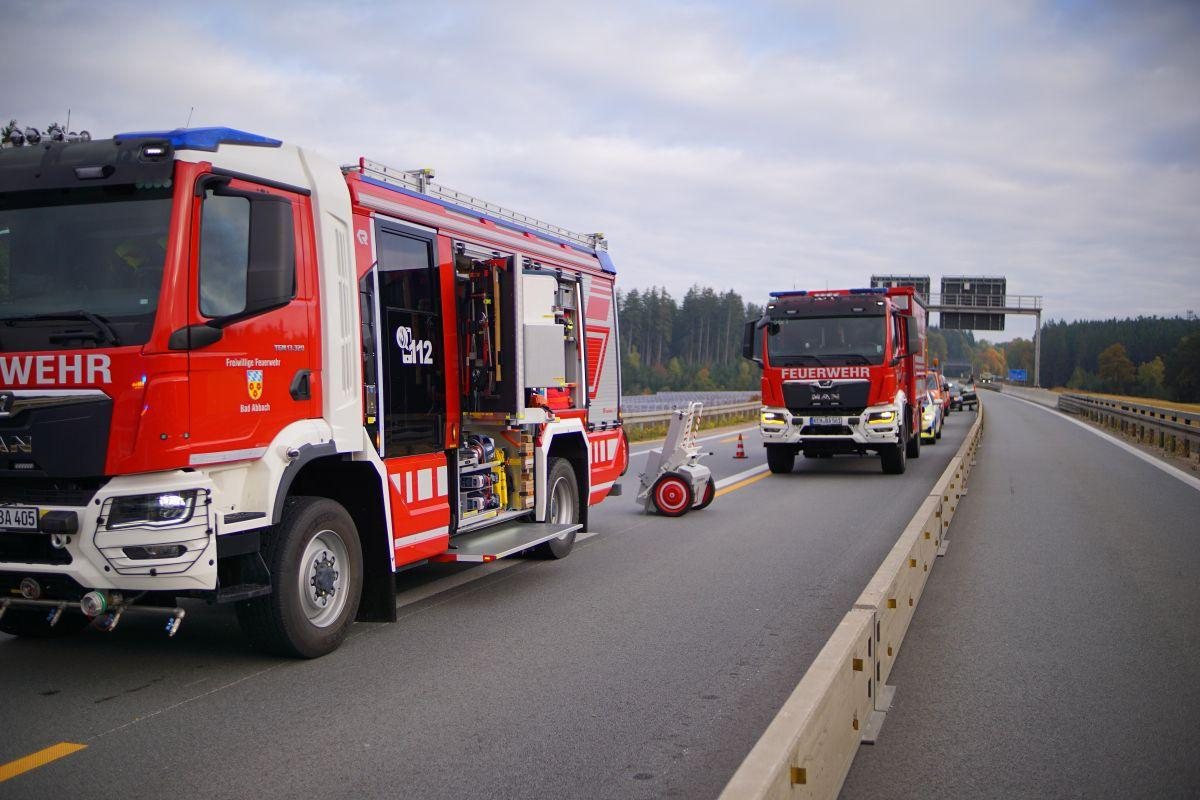 Gegen 8:30 Uhr wurden wir gemeinsam mit der Feuerwehr Teugn aufgrund auslaufender Betriebsstoffe auf die Autobahn 93, auf Höhe des Dreiecks Saalhaupt alarmiert.
