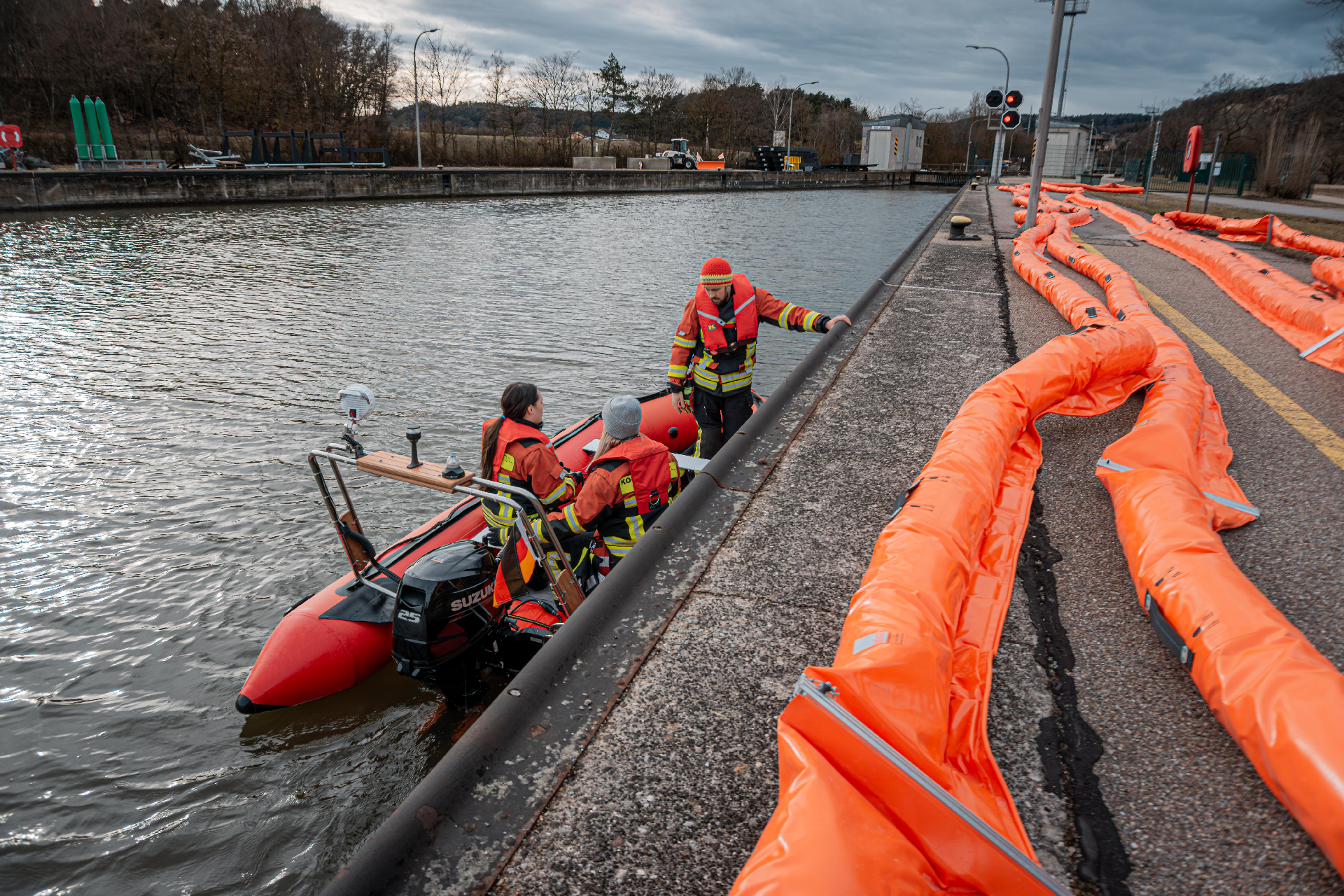 Ein Bunkerschiff hatte mehrere Liter Gasöl verloren, was zu einer großflächigen Verschmutzung der Wasseroberfläche führte. Nach einer umgehenden Lageerkundung durch den Fachberater des THW und den Einsatzleiter der Feuerwehr wurde die Fachgruppe Ölschaden des THW mit Alarmstufe 2 hinzugezogen.