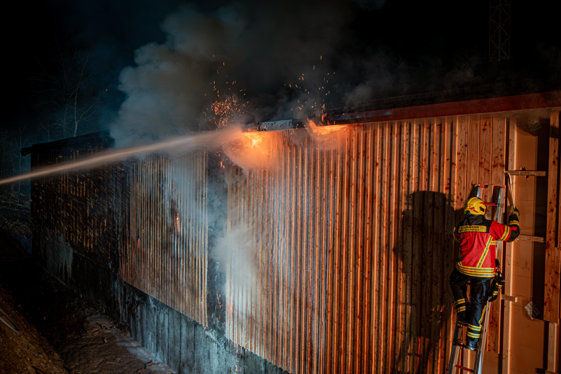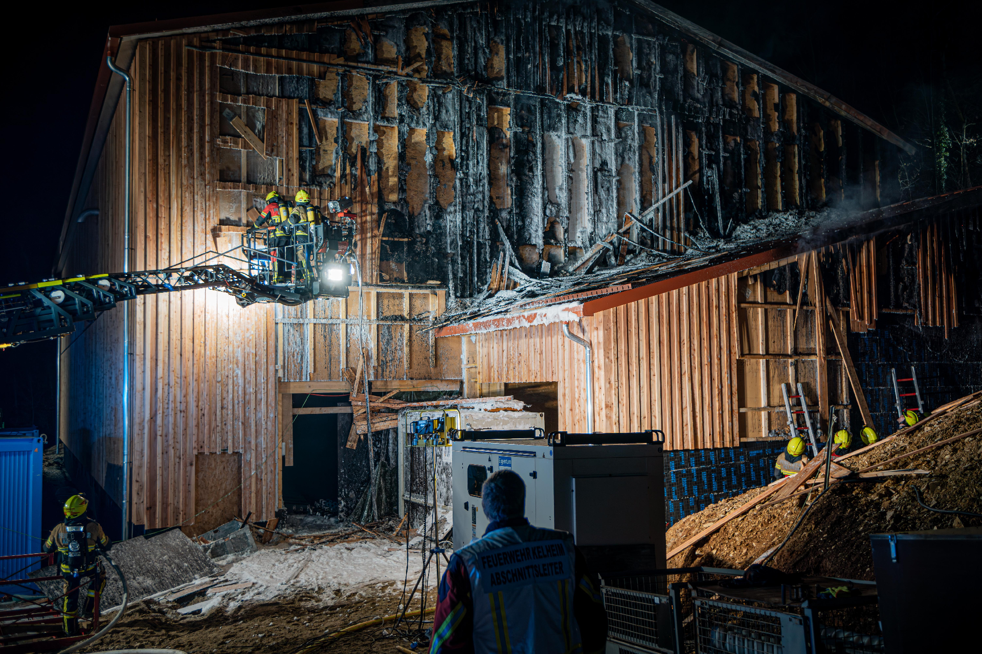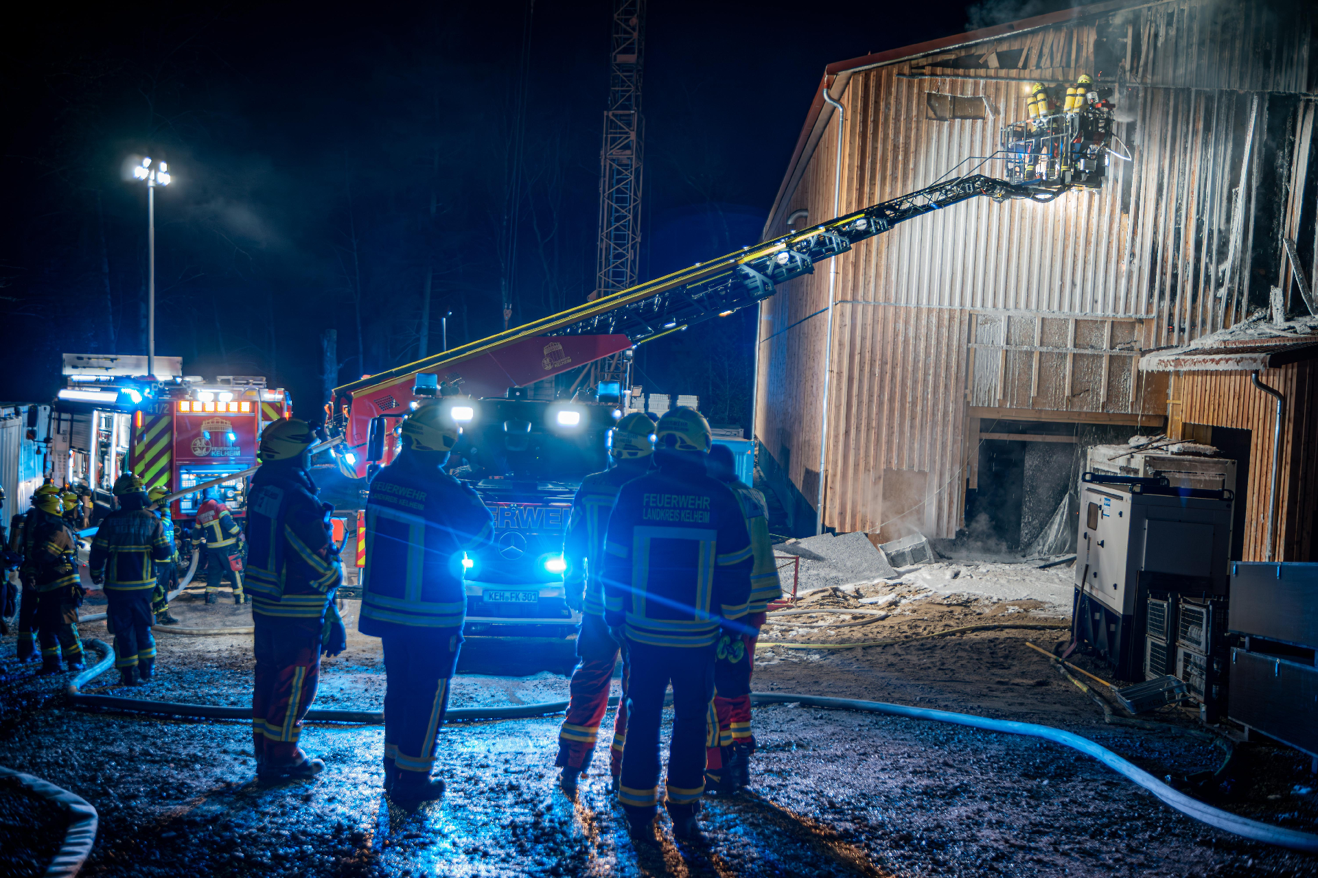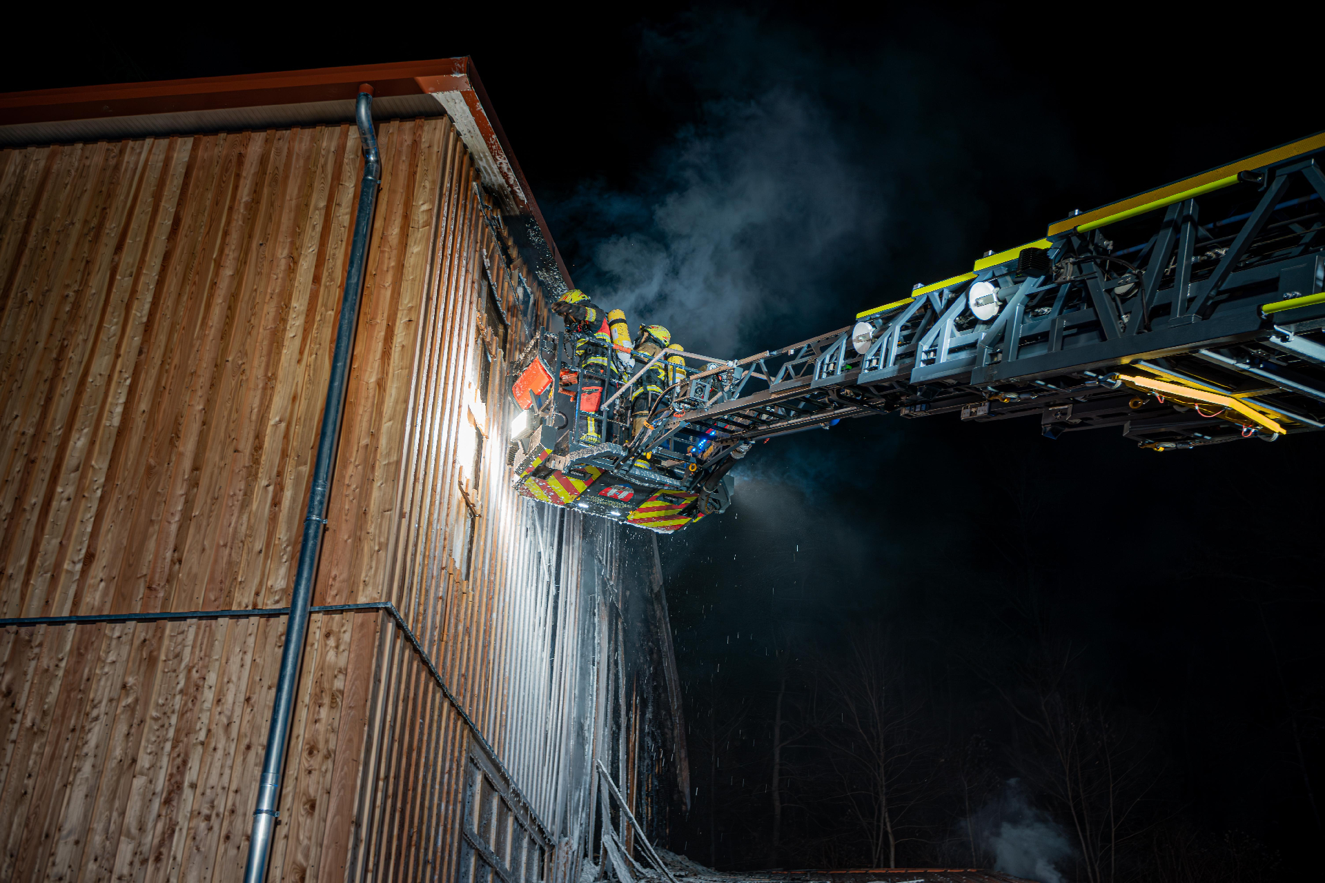 Bei Eintreffen der ersten Einsatzkräfte bestätigte sich die Meldung. An einer neuerrichteten Halle kam es zu einem Fassadenbrand, was die Kräfte anfangs vor massive Herausforderungen stellte. Fassandenteile mussten teilweise aufwendig demontiert werden, um den Brand im Bereich der dazwischenliegenden Dämmung ablöschen zu können.