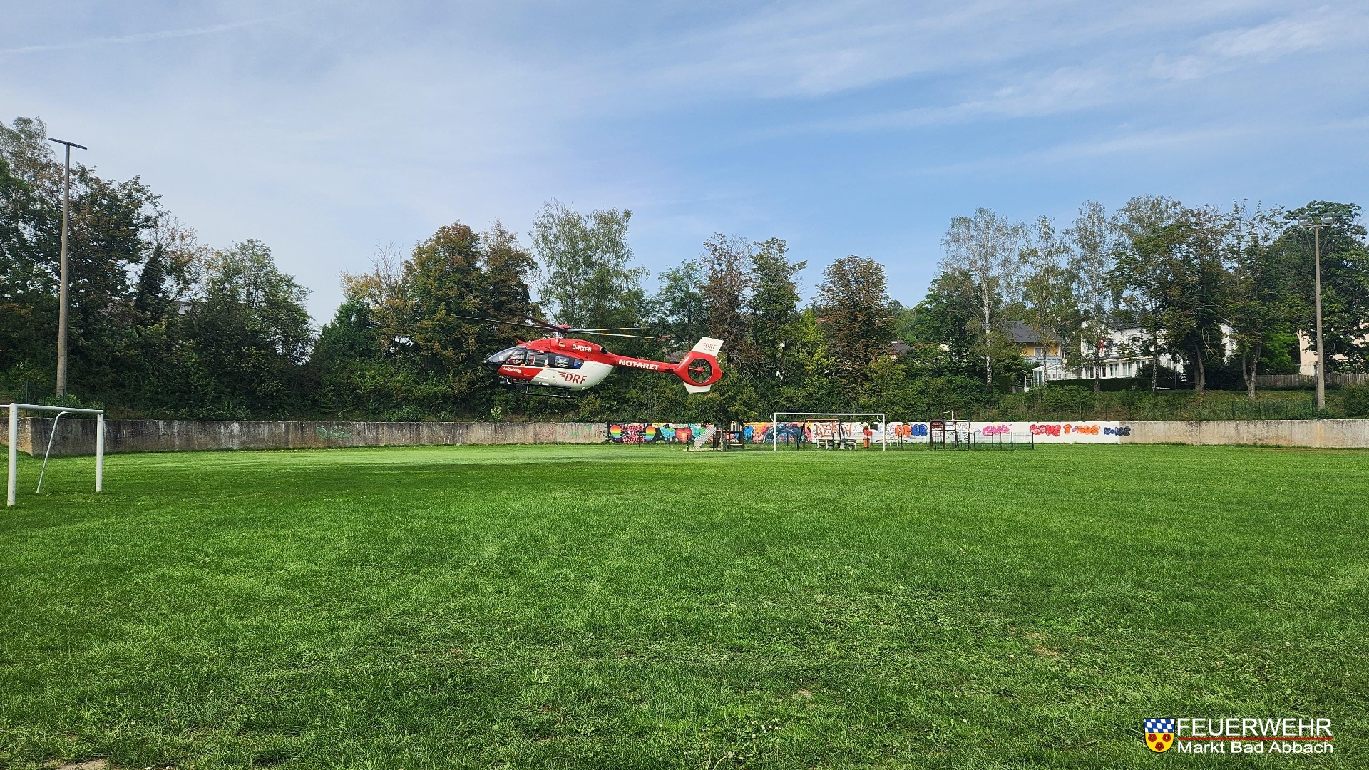 Gegen 14:15 Uhr wurden wir zu einer Absicherung Hubschrauberlandung in den Ortskern alarmiert. Aufgrund eines medizinischen Notfalles musste der Intensivtransporthubschrauber "Christoph München" am Sportplatz landen. Wir übernahmen die Brandschutzsicherungsmaßnahmen bei der Landung sowie beim Start.