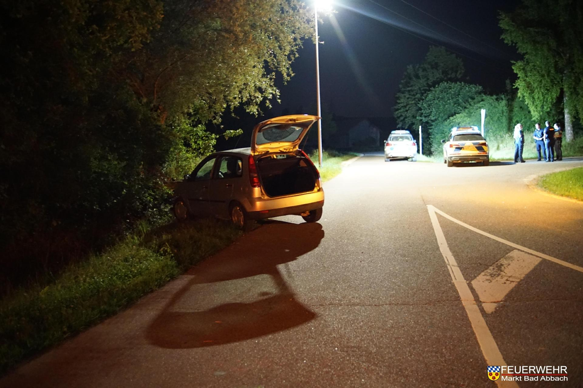 Passanten entdeckten einen an einem Baum und mit ausgelösten Airbags stehenden Kleinwagen der Marke Ford (Fiesta in silber). Die zuständige Polizeiinspektion Kelheim fuhr die Unfallstelle an, konnte aber keinerlei Personen feststellen und forderte uns nach.