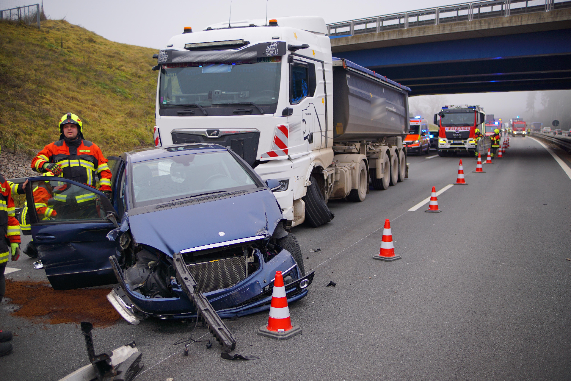 Zu einem Verkehrsunfall zwischen einem Lkw und einem Pkw wurden wir mit der Feuerwehr Teugn auf die Autobahn 93 Höhe dem Dreieck Saalhaupt alarmiert. Beide Fahrzeuge waren nach dem Unfall nicht mehr Fahrbereit. Die Autobahn musste für rund eine halbe Stunde komplett gesperrt werden. Eine Person wurde bei dem Unfall verletzt und durch den mitalarmierten Rettungsdienst ins Krankenhaus verbracht. Nachdem der Pkw abgeschleppt war, übergaben wir die Einsatzstelle an die Autobahnmeisterei, sowie der Polizei.